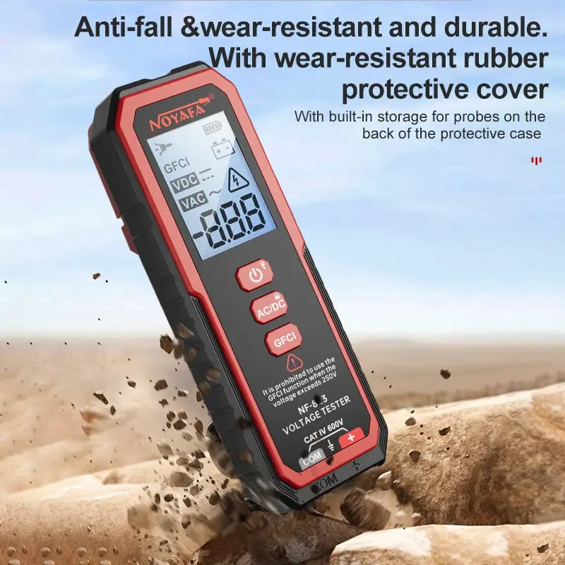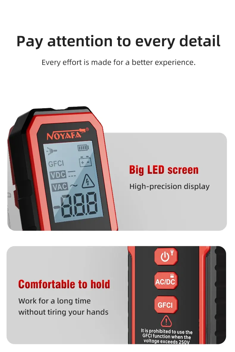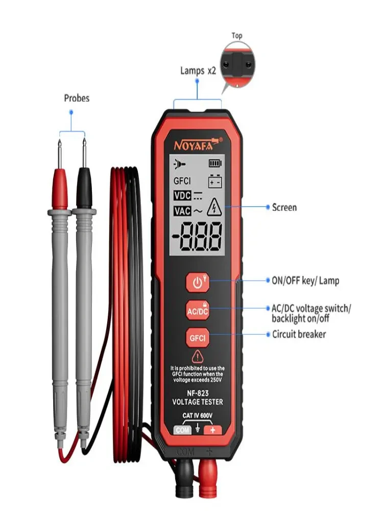 Noyafa NF-823 – Cyfrowy Detektor Napięcia AC/DC 100mV–610V z Testem GFCI i Podświetleniem LED