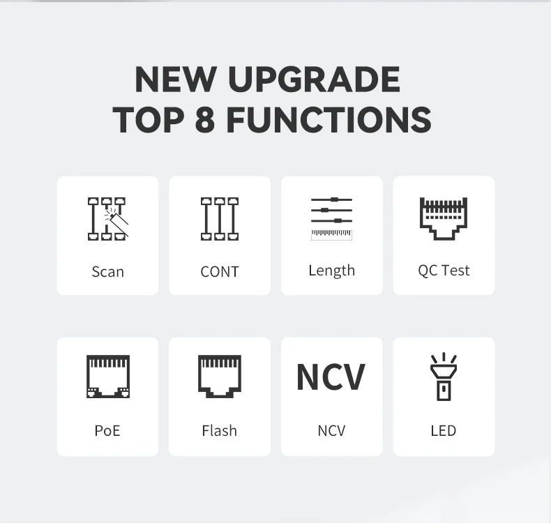 NF-859GS łączy w sobie osiem kluczowych funkcji pomiarowych, umożliwiając szybkie wykrywanie błędów okablowania, weryfikację jakości zarobienia wtyków oraz analizę PoE. To efektywny sposób na optymalizację pracy podczas budowy lub serwisowania instalacji sieciowych.
