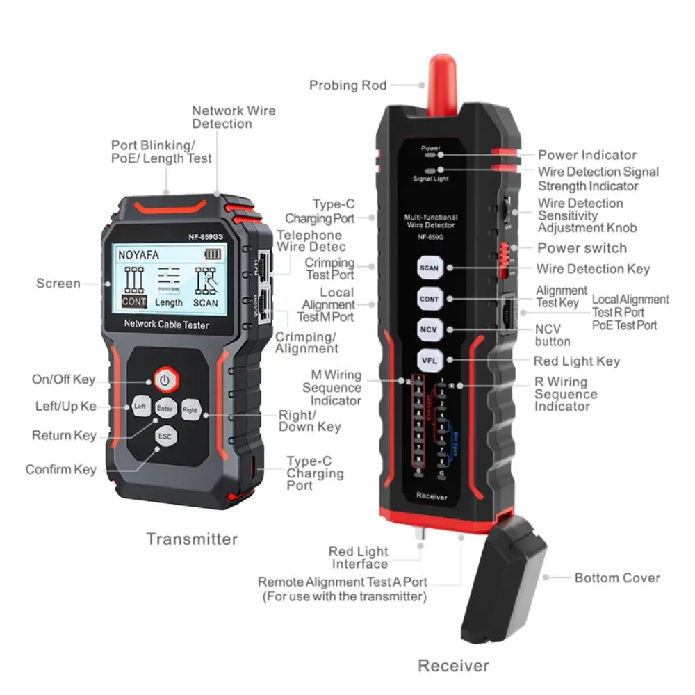 NOYAFA NF-859GS – profesjonalny tester kabli sieciowych z lokalizatorem VFL 10 mW