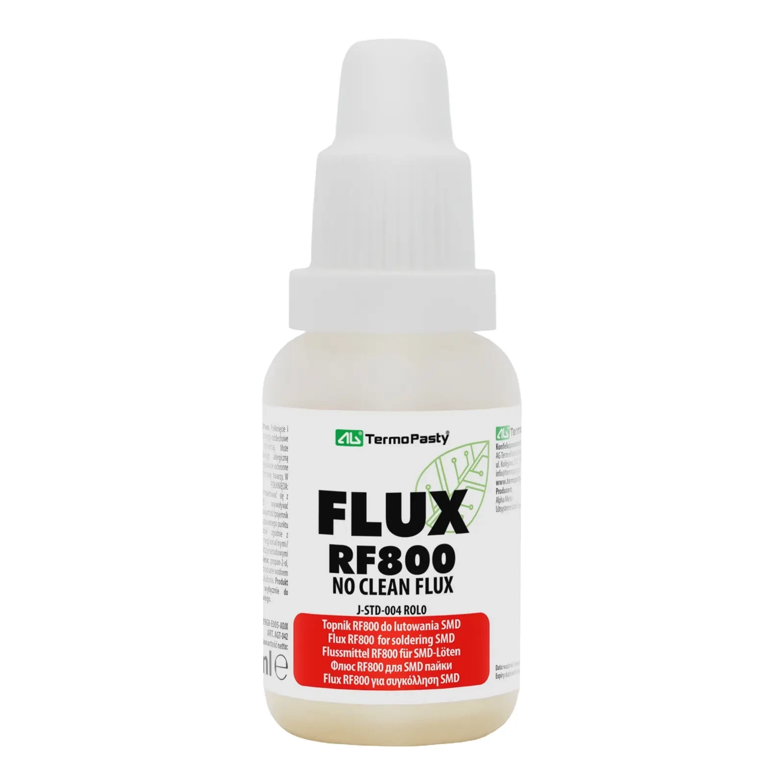 Średnioaktywny topnik kalafoniowy RF-800 który doskonale zwilża powierzchnie Cu i PbSn. Produkt nie wymaga zmywania.