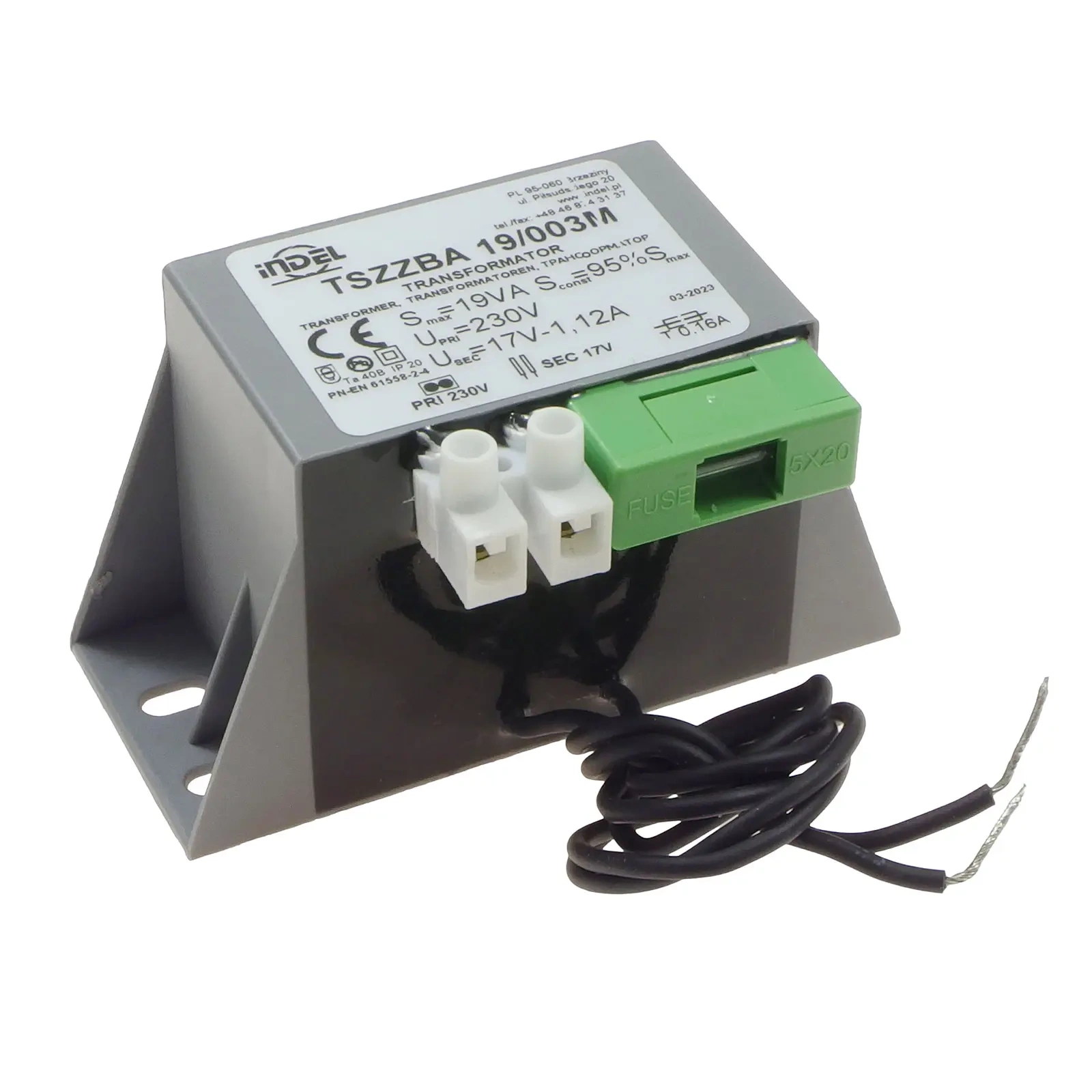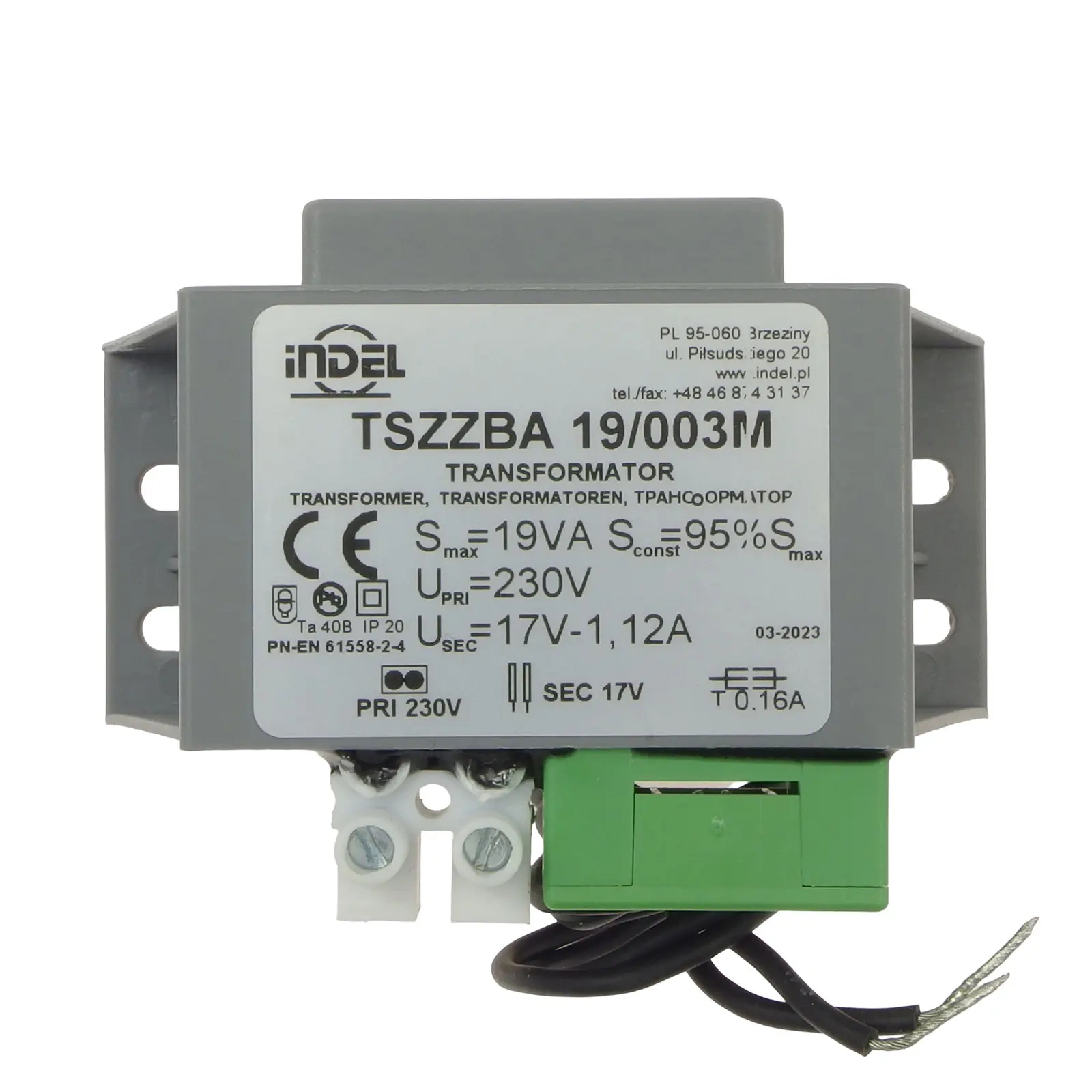 Transformator sieciowy TSZZBA 19/003M [230V/17V-1,12A] do alarmów, wyprowadzenia: przewody i listwa zaciskowa