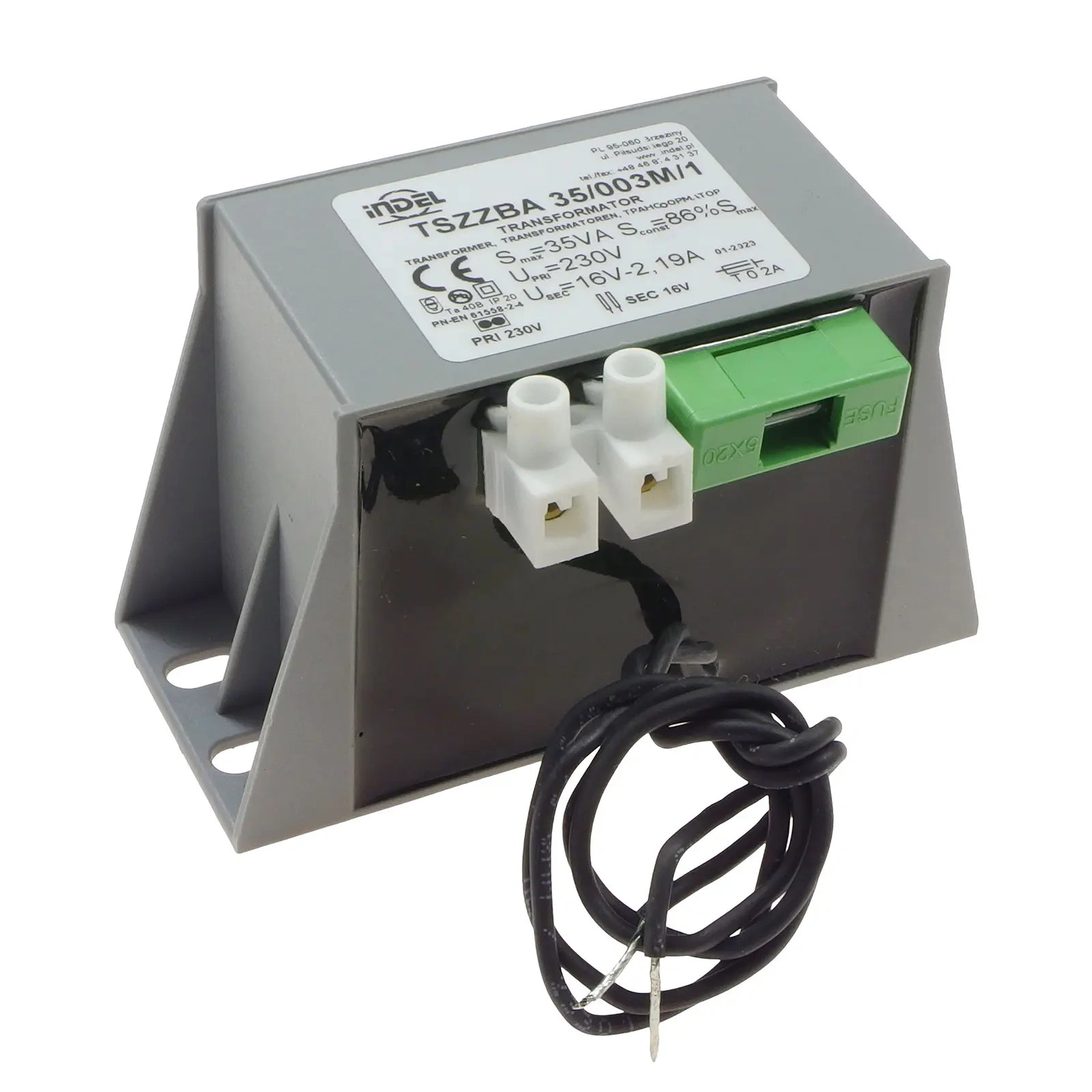 Transformator sieciowy TSZZBA 35/003M/1 [230V/17V-2,06A] do alarmów, wyprowadzenia: przewody i listwa zaciskowa