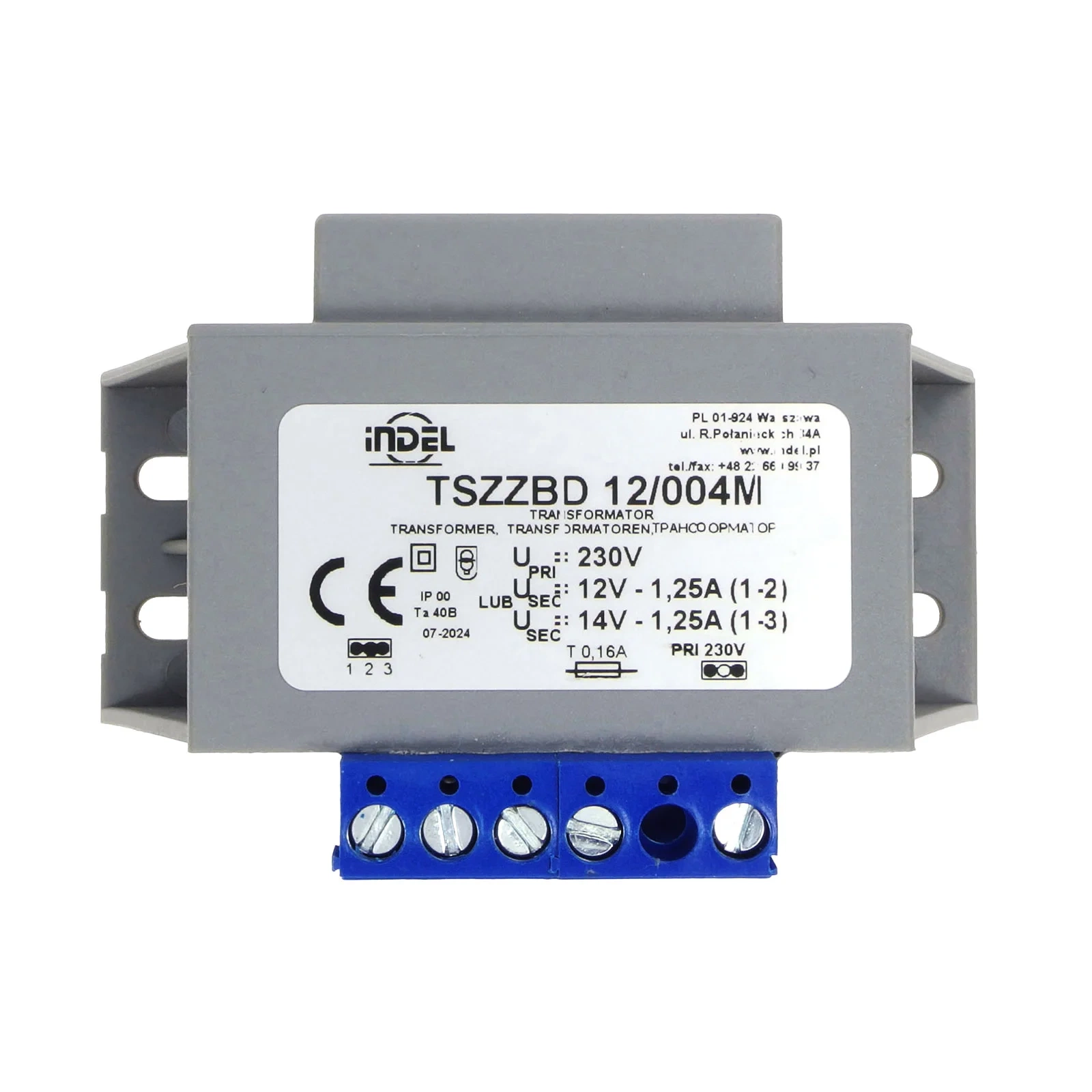 Transformator sieciowy TSZZBD 12/004M [230V/0-12-14V-0,85A] do domofonów, wyprowadzenia: listwa zaciskowa