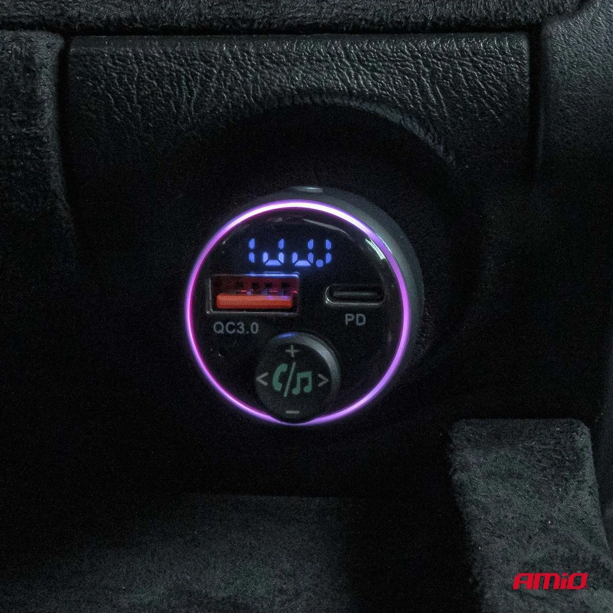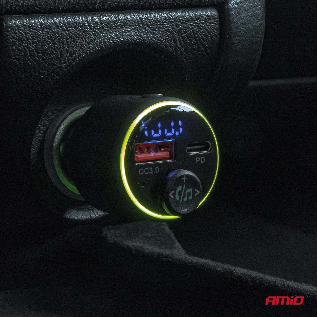 Transmiter samochodowy FM 1×USB-A 1×USB-C 12V 24V AMIO-04655