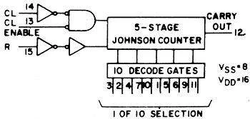 CD4017 SMD 5-bitowy dziesiętny licznik Johnsona, napięcie zasilania 3-15 V, poziomy we. VIL/VIH 30/70% VCC, opóźnienie bramki 40 ns, pobór mocy na bramkę (statyczny) 0,1 mW, zakres temperatur -40 - + 85 st C, obudowa SO16
