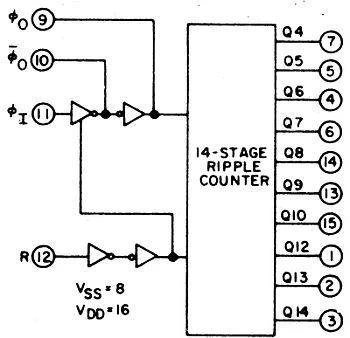 CD4060 SMD Generator i 14-stopniowy licznik/dzielnik dwójkowy, napięcie zasilania 3-15 V, poziomy we. VIL/VIH 30/70% VCC, opóźnienie bramki 40 ns, pobór mocy na bramkę (statyczny) 0,1 mW, zakres temperatur -40 - + 85 st C, obudowa SO16