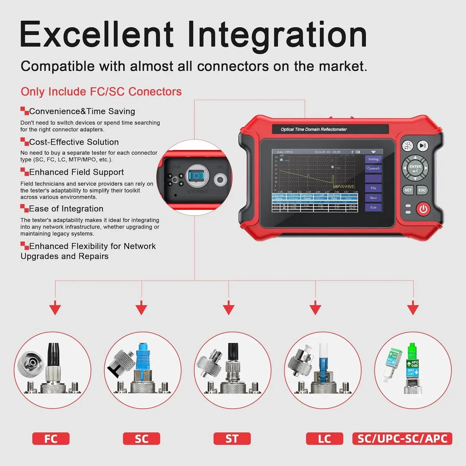Interfejsy SC/PC, FC/PC oraz FC/APC zapewniają współpracę z większością światłowodowych systemów dostępowych i operatorskich. Dzięki temu urządzenie nie wymaga stosowania dodatkowych przejściówek w typowych scenariuszach diagnostycznych.
