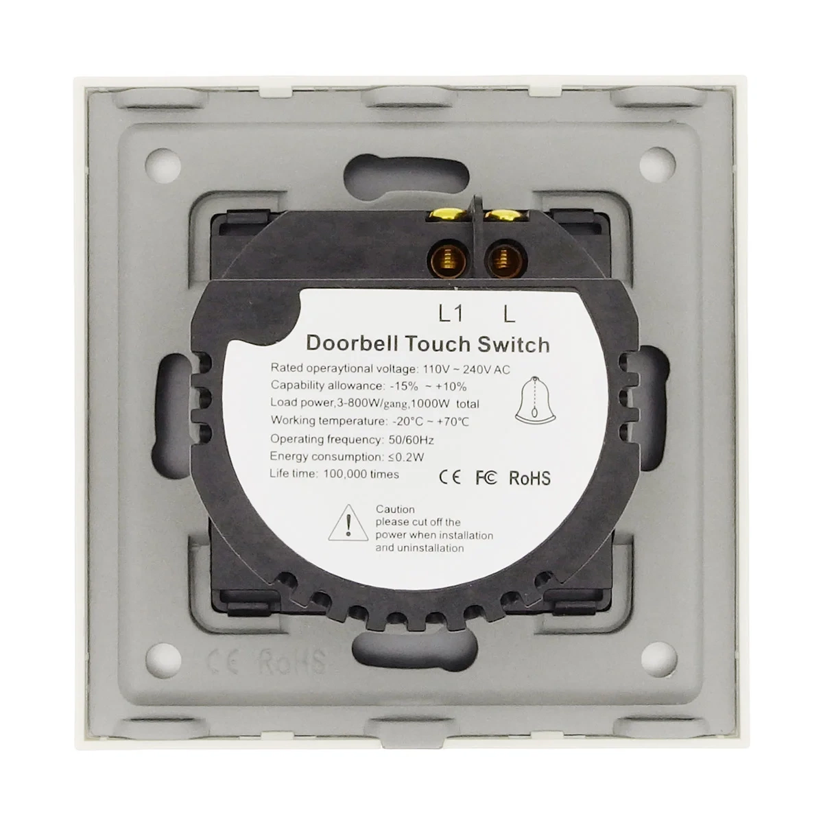 Włącznik dzwonkowy Tawoia Smart Home to włącznik chwilowy, który działa tylko w momencie dotyku. Wyróżnia się eleganckim szklanym panelem dotykowym, nowoczesnym designem oraz delikatnym podświetleniem LED.