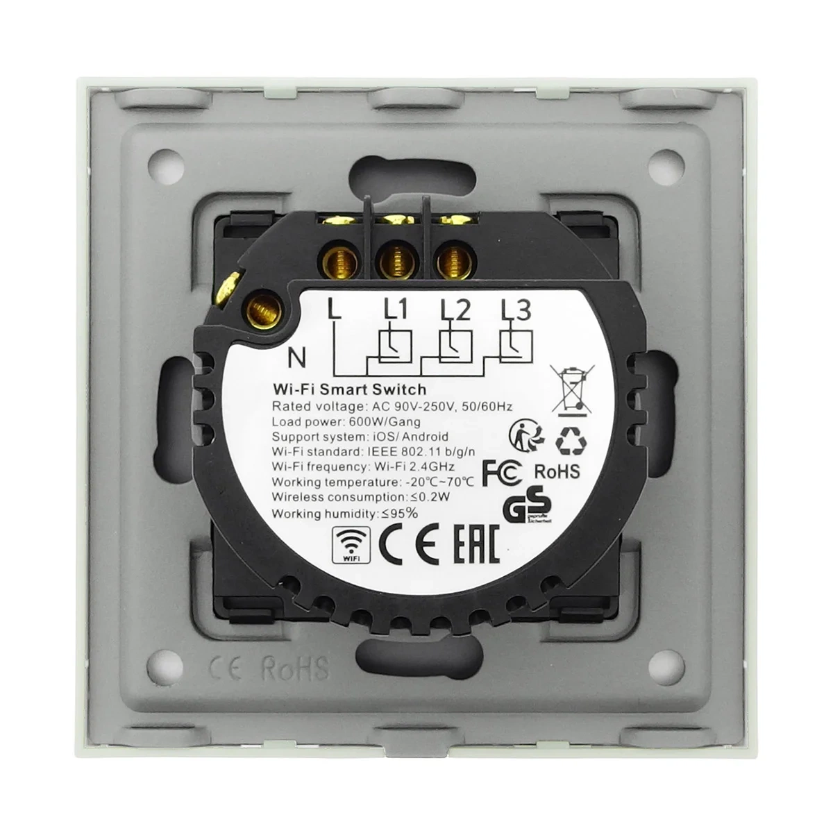 Inteligentny włącznik dotykowy WiFi + BL oprócz fizycznego (dotykowego) operowania ma możliwość sterowania bezdotykowego w systemie WiFi Bluetooth. Oferuje pełną kontrolę nad oświetleniem za pomocą aplikacji mobilnej, a także możliwość szybkiego parowania przez Bluetooth. Kompatybilność z Tuya Smart / Smart Life oraz obsługa głosowa przez Amazon Alexa i Google Assistant zapewnia wygodę w codziennym użytkowaniu. Dzięki nowoczesnemu wzornictwu i pełnemu panelowi z hartowanego szkła, włącznik ten idealnie komponuje się z minimalistycznymi i designerskimi wnętrzami.