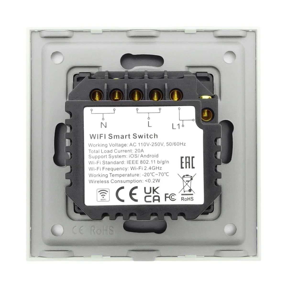 Włącznik dotykowy szklany pojedynczy 20A AC 4600W - sterowanie WiFi + Bluetooth - biały - Tawoia Smart Home