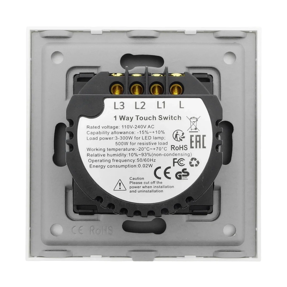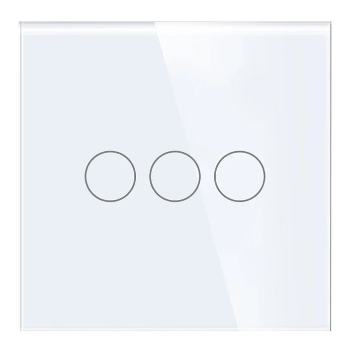 Trójpolowy włącznik dotykowy Tawoia Smart Home to zaawansowane rozwiązanie dla dużych pomieszczeń lub kompleksowego zarządzania oświetleniem. Dzięki minimalistycznemu szklanemu frontowi z wyraźnie oznaczonymi strefami dotyku, jest funkcjonalny i estetyczny zarazem.