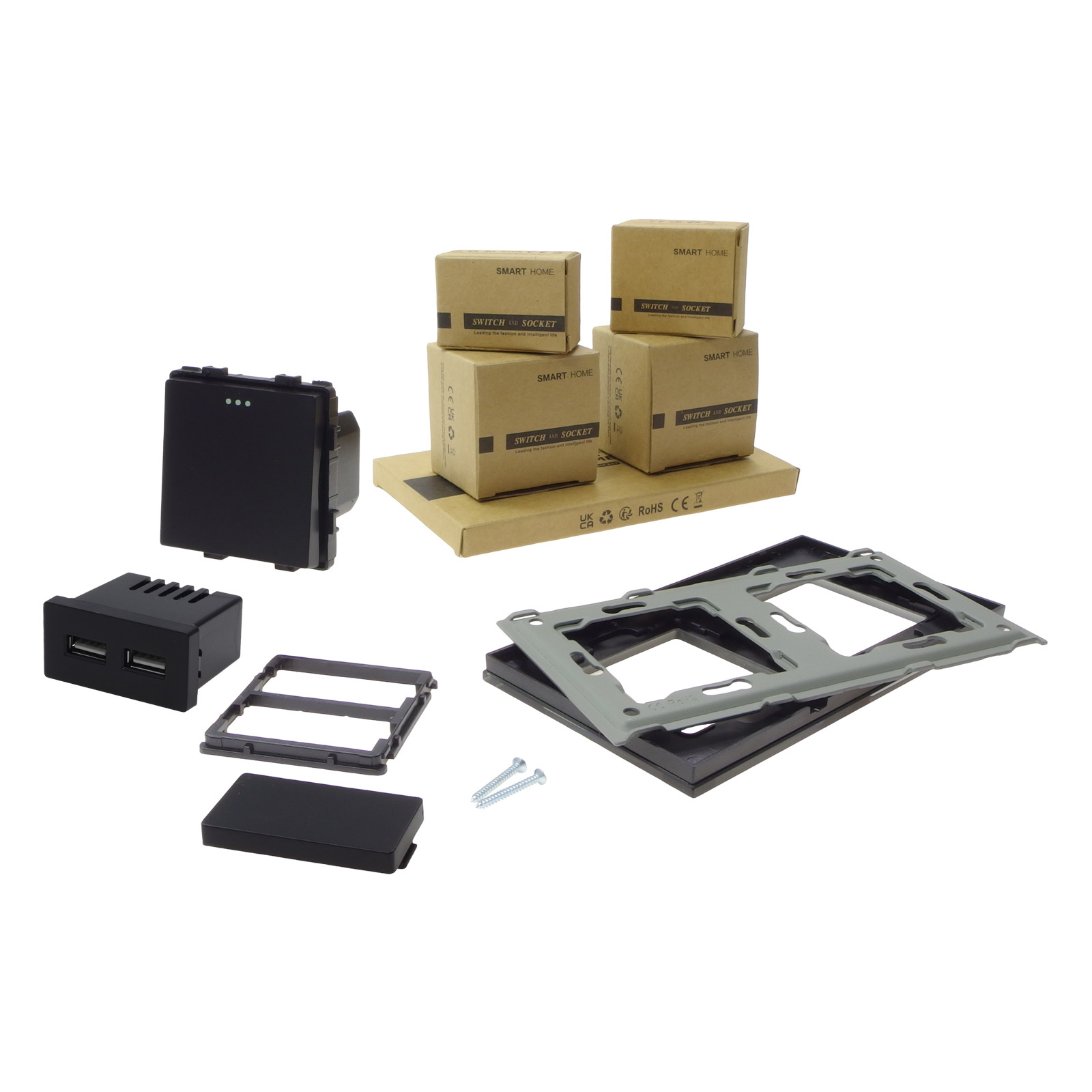 - moduł ładowarki USB (2 porty USB 2,4A) - moduł wąski na ½ otworu ramki