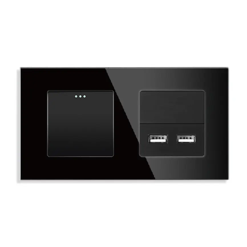 Włącznik światła + moduł ładowarki USB (2 gniazda USB 2,4A) z ramką szklaną podwójną - czarny - Tawoia Glass