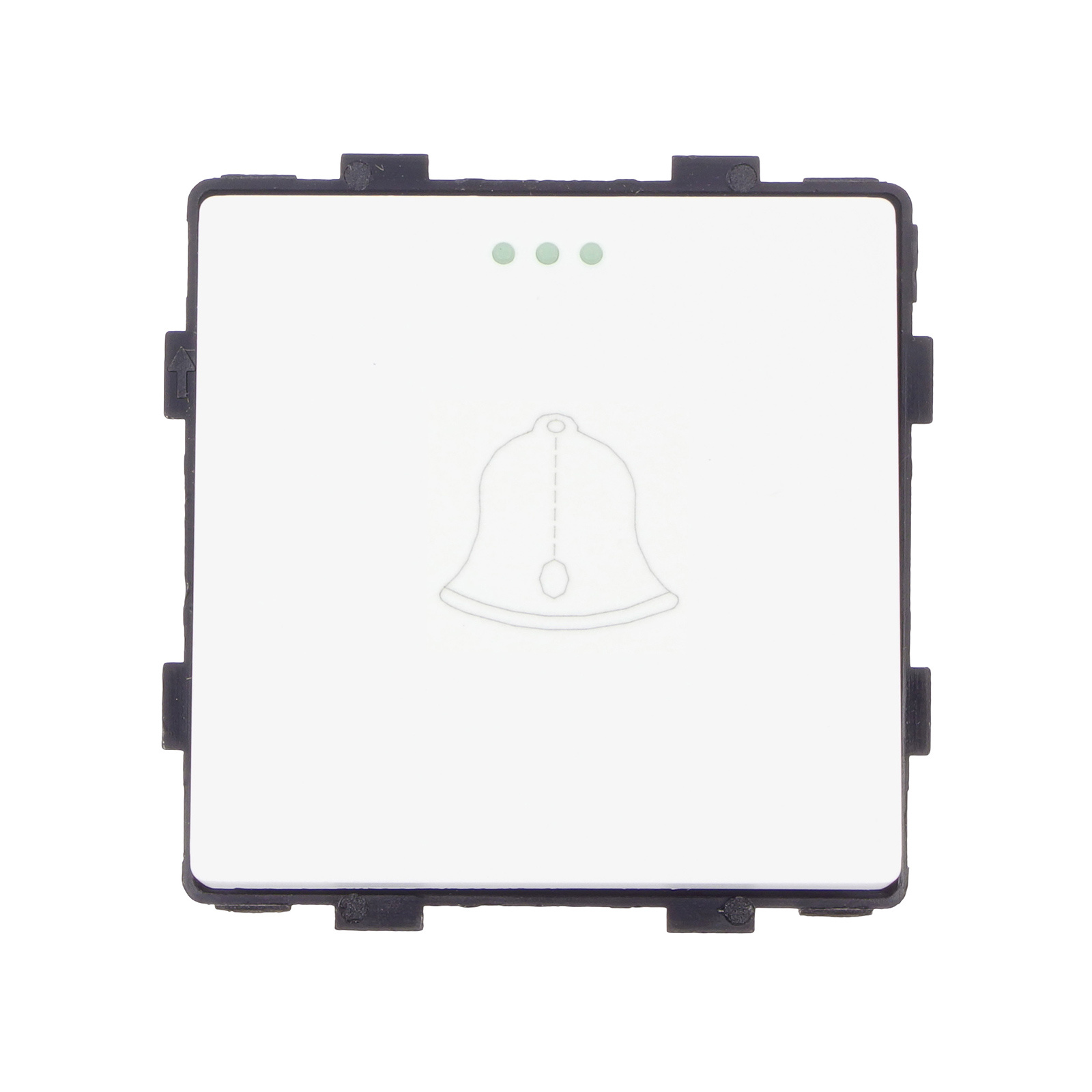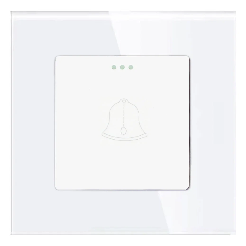 Włącznik dzwonkowy z ramką szklaną TAWOIA Glass. Jest to włącznik impulsowy, monostabilny, odbijający. Trzy małe kropeczki na górze włącznika przypominają diody świecące. Jednak nie są to diody, tylko wypukłe kropeczki z tworzywa sztucznego, pokryte farbą fluorescencyjną, która w dzień absorbuje światło, a w nocy delikatnie świeci, ułatwiając znalezienie włącznika w ciemności. Kompletny włącznik ma estetyczny, elegancki wygląd, a klasyczny design świetnie wpisuje się w różnorodne style wnętrz – od tradycyjnych do nowoczesnych.