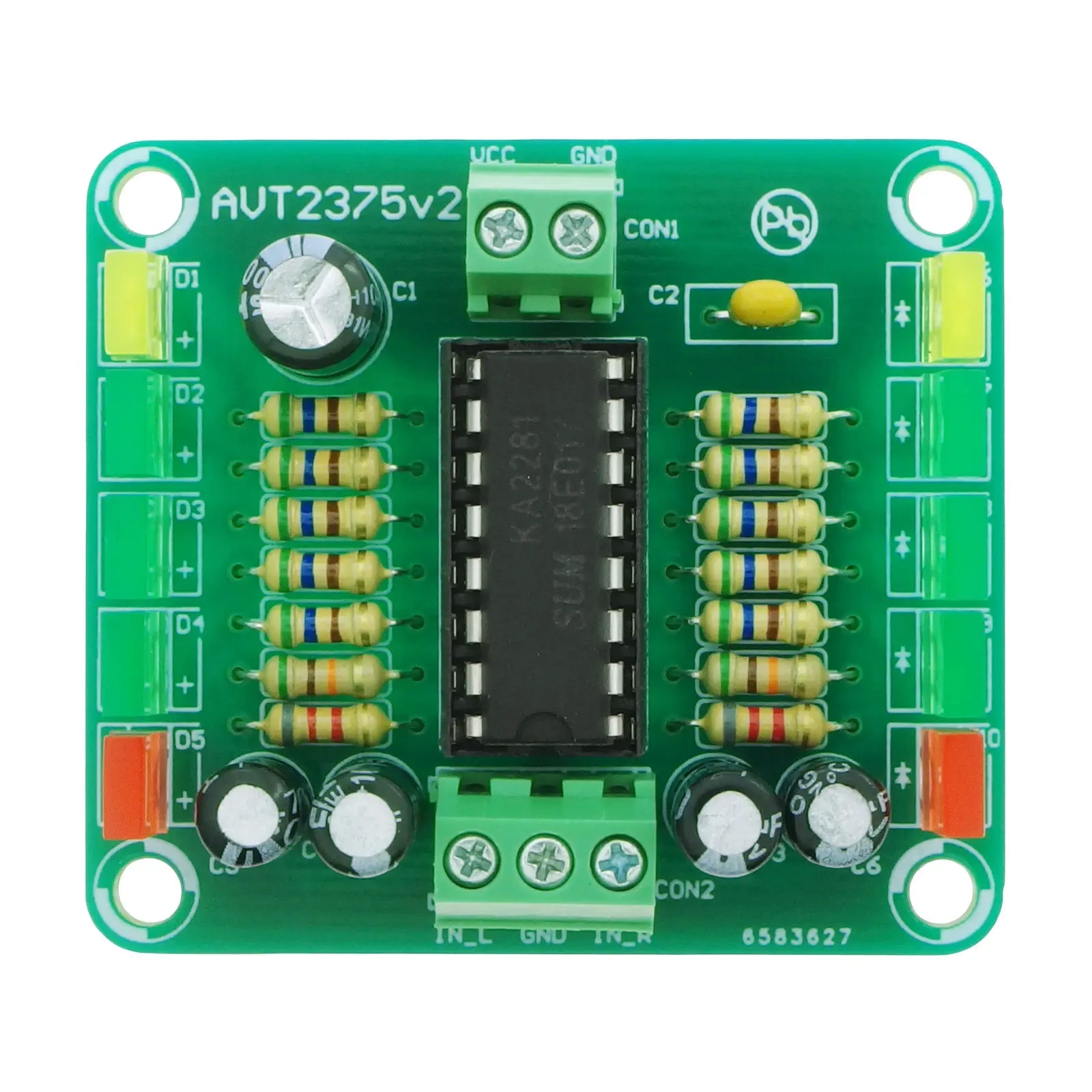 Moduł AVT2375 to prosty i skuteczny wskaźnik wysterowania stereo, który dzięki wykorzystaniu układu KA2281 pozwala w łatwy sposób dodać wizualizację poziomu sygnału audio do wzmacniacza, miksera, przedwzmacniacza czy zestawu edukacyjnego. Zastosowany układ scalony posiada wbudowane przedwzmacniacze oraz detektory, dzięki czemu moduł wymaga minimalnej liczby elementów zewnętrznych i jest idealny dla początkujących konstruktorów elektroniki.