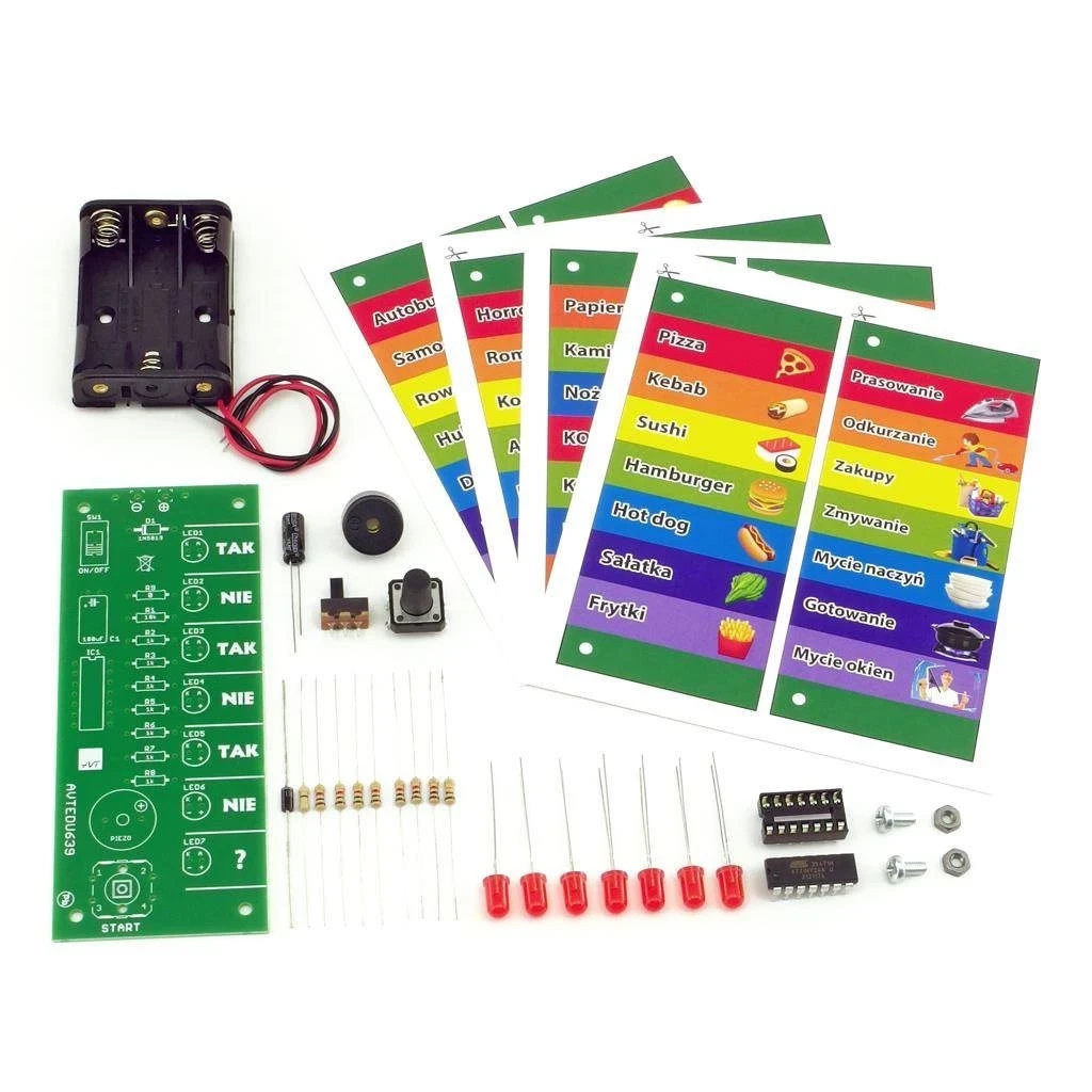 Zestaw DIY do samodzielnego zlutowania: w zestawie znajduje się płytka drukowana oraz komplet elementów elektronicznych