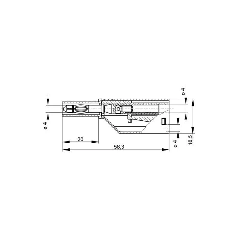 Bezpieczny wtyk Ø4mm typu lamelkowego z bezpiecznym gniazdem Ø4mm do połączeń wieżowych, z zabezpieczeniem przed dotykiem części metalowej.