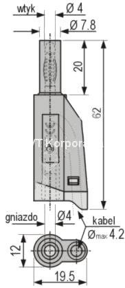 Bezpieczny wtyk Ø4 mm z zabezpieczeniem przed dotykiem części metalowej z bezpiecznym gniazdem do połączeń wieżowych.