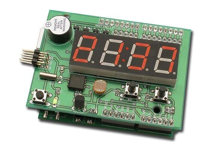 Moduł jest nakładką na płytkę bazową projektu AVTduino (AVT5272). Oprócz czterocyfrowego wyświetlacza LED, przycisku Reset i złącza programowania ISP, płytka została wyposażona w układ zegara RTC z interfejsem I²C [I2C, IIC] oraz termometr DS18B20. Urządzenie szczególnie polecane elektronikom wykorzystującym platformę Arduino