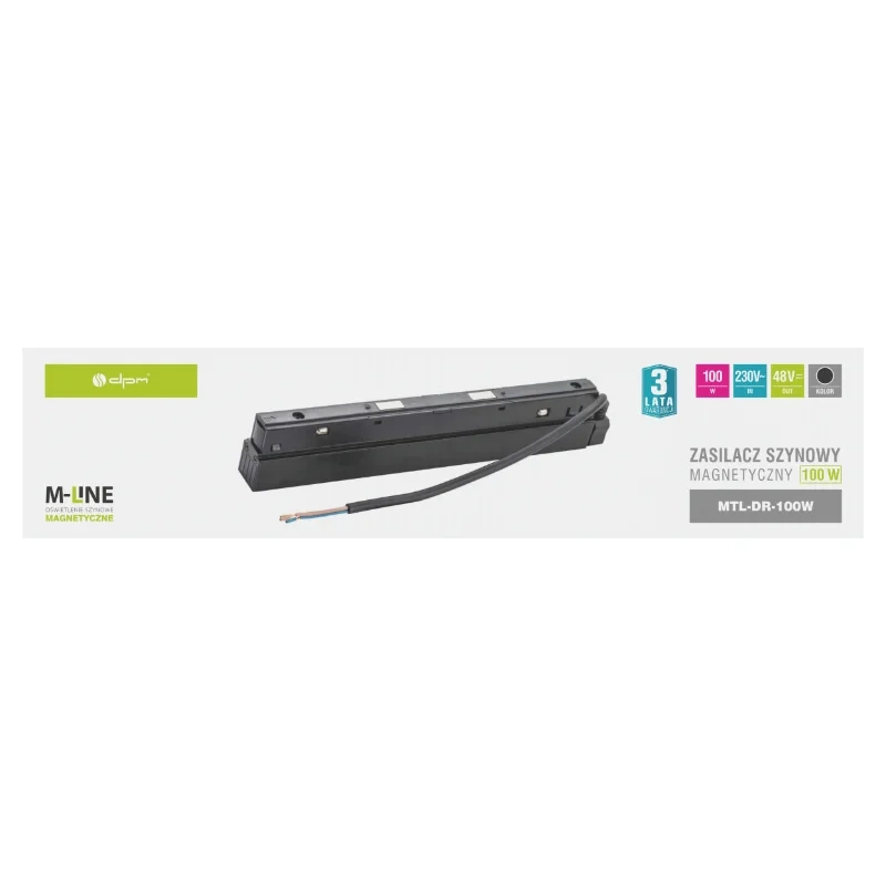 Zasilacz DPM M-LINE MTL-DR-100W to wysokiej jakości jednostka zasilająca przeznaczona do magnetycznych systemów oświetleniowych M-LINE. Urządzenie przetwarza napięcie 230 V AC na stabilne 48 V DC, gwarantując bezpieczne i efektywne zasilanie lamp magnetycznych, reflektorów oraz listw LED z serii M-LINE. Dzięki kompaktowej obudowie i czarnemu wykończeniu zasilacz można łatwo wkomponować w nowoczesne wnętrza lub ukryć w zabudowie sufitowej.