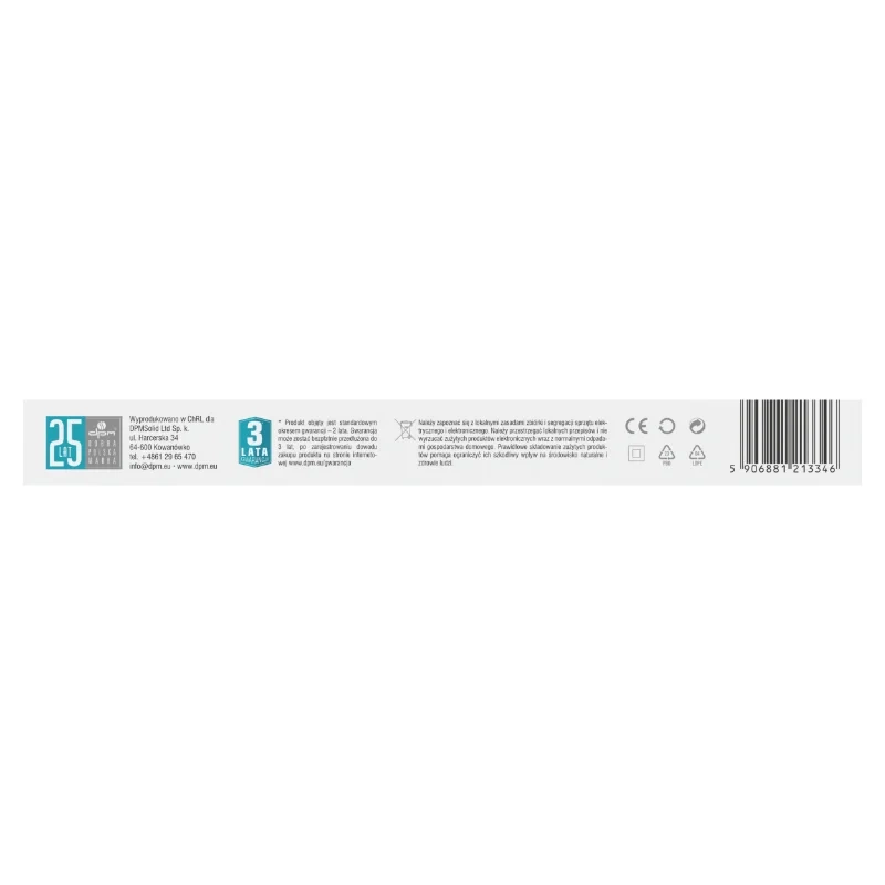 Solidna obudowa z aluminium pełni funkcję radiatora, skutecznie odprowadzając ciepło podczas pracy. Zasilacz pracuje z chłodzeniem pasywnym, co oznacza całkowicie bezgłośną pracę i brak elementów mechanicznych narażonych na zużycie. Niewielkie wymiary umożliwiają montaż w suficie podwieszanym lub wewnątrz zabudowy technicznej, zachowując estetykę instalacji.