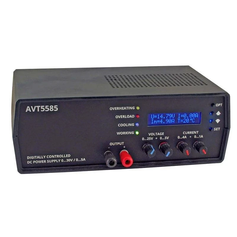 Uniwersalny zasilacz laboratoryjny 0-30V 5A ze sterowaniem mikroprocesorowym. Urządzenie szczególnie polecane w każdym laboratorium elektronicznym; do zasilania układów analogowych i cyfrowych.
