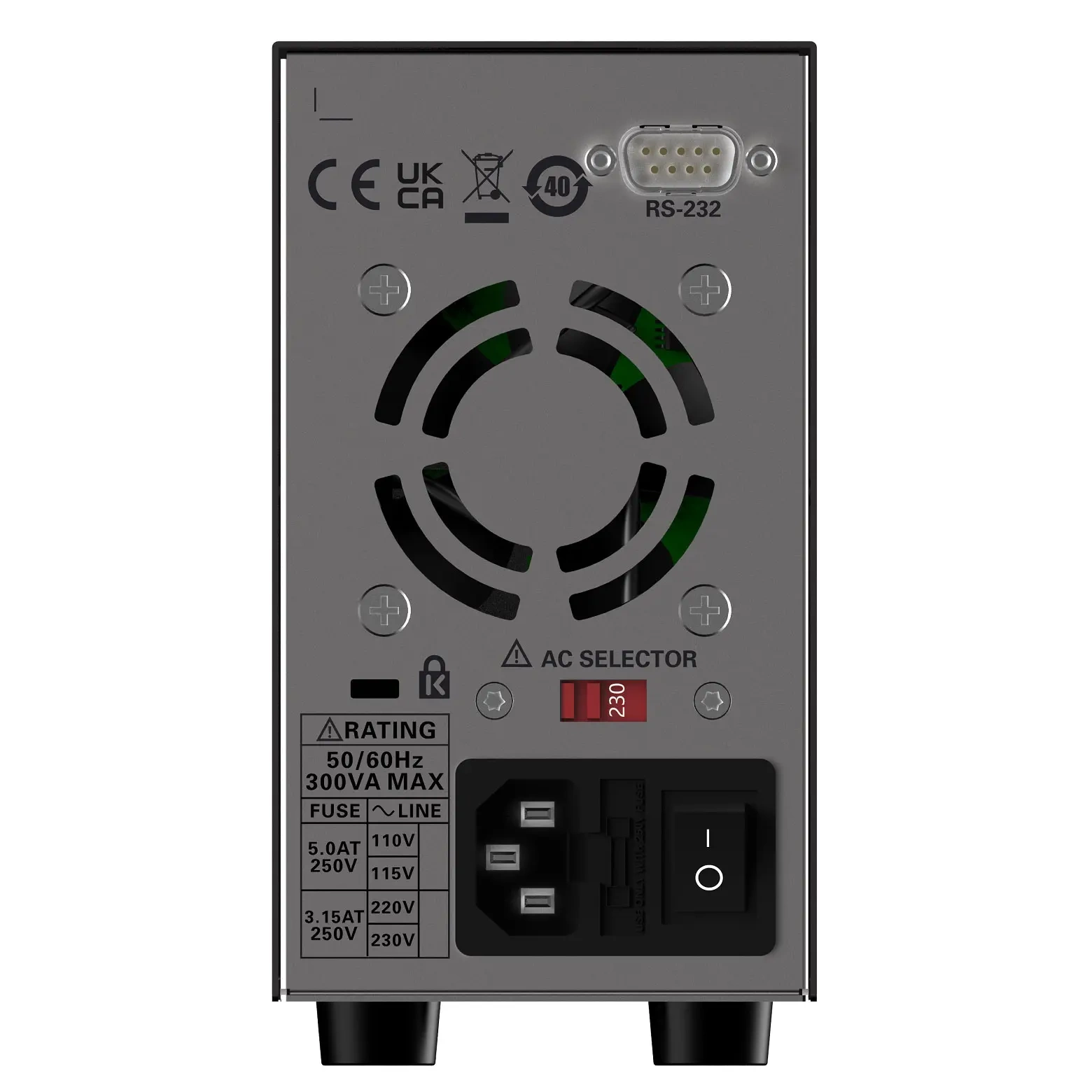 Interfejs RS232 umożliwia zdalne sterowanie i integrację z systemami pomiarowymi. Urządzenie oferuje pamięć 10 ustawień, tryby CV/CC z automatycznym przełączaniem oraz zabezpieczenia przed przepięciem, przeciążeniem, przegrzaniem i zwarciem. Kompaktowa konstrukcja i inteligentny system chłodzenia zapewniają cichą i niezawodną pracę.