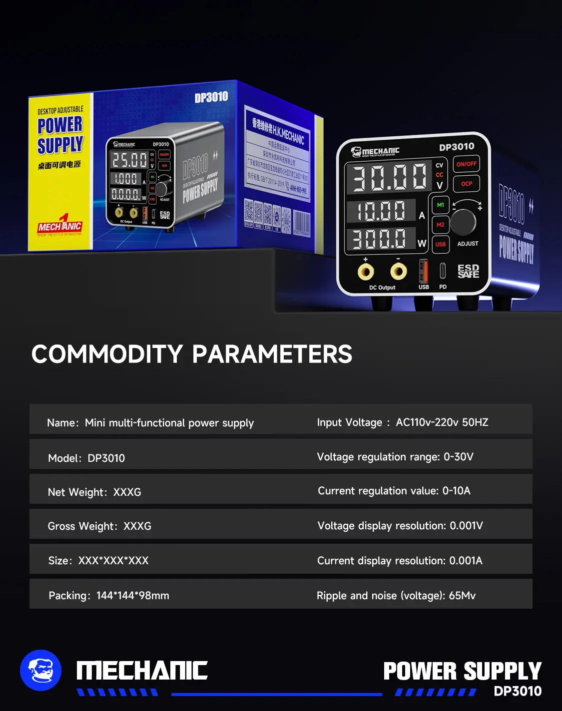 Zasilacz laboratoryjny 30V / 10A – Mechanic DP3010
