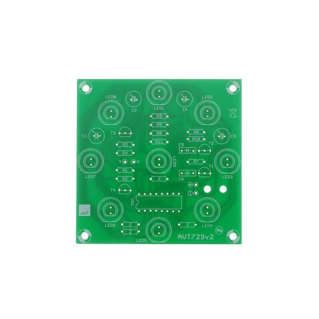 Znakomita zabawka, interesujący gadżet świetlny. W układzie wykorzystano jasno świecące diody LED o średnicy 5 lub 10mm. Wokół środkowego punktu świetlnego wiruje drugi, kolorowy punkt. Proces przebiega w sposób zmienny i przypadkowy.