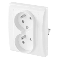 Gniazdo elektryczne podwójne z uziemieniem, montaż podtynkowy, kolor biały, EMOS A6001.1
